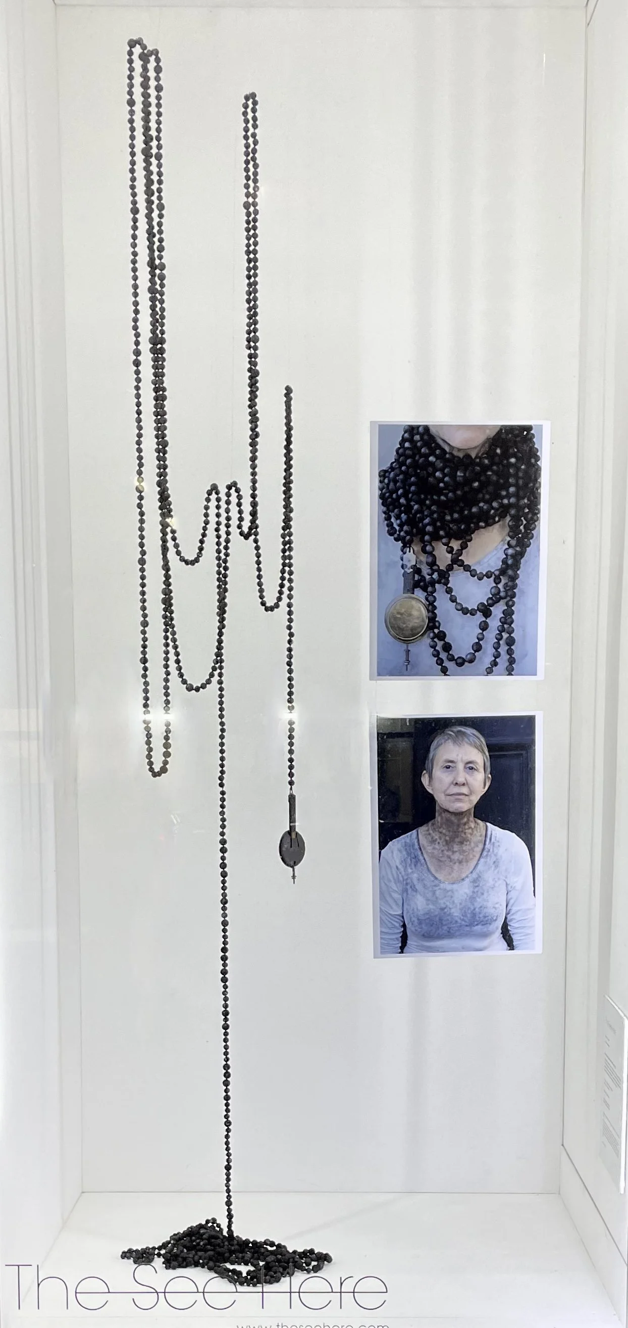 2025, 1071 burnt wooden beads (one for each day), waxed cord, clock pendulum